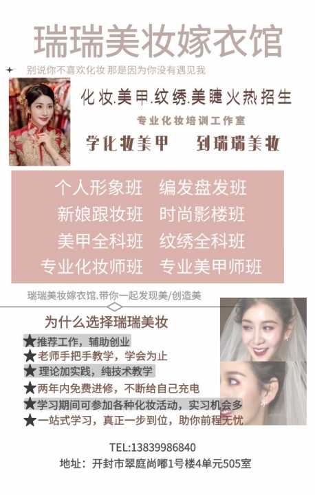 瑞瑞美妆化妆美甲美睫培训招生中