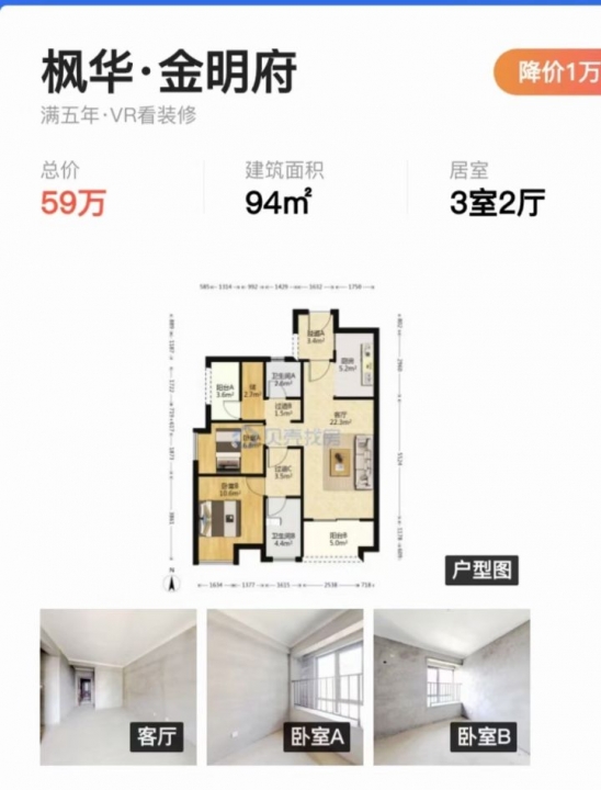 房子户型好,小区采用人车分流设计94平米 59万详情咨询:*****9097