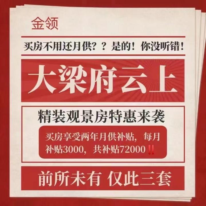 大梁府福利来啦来啦买房享受两年月供补贴,每月补贴3000,共补贴72000前所...